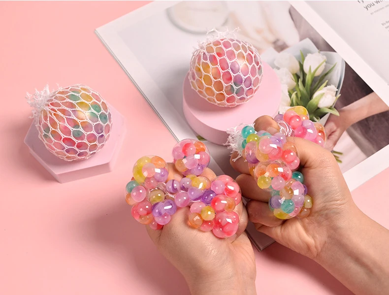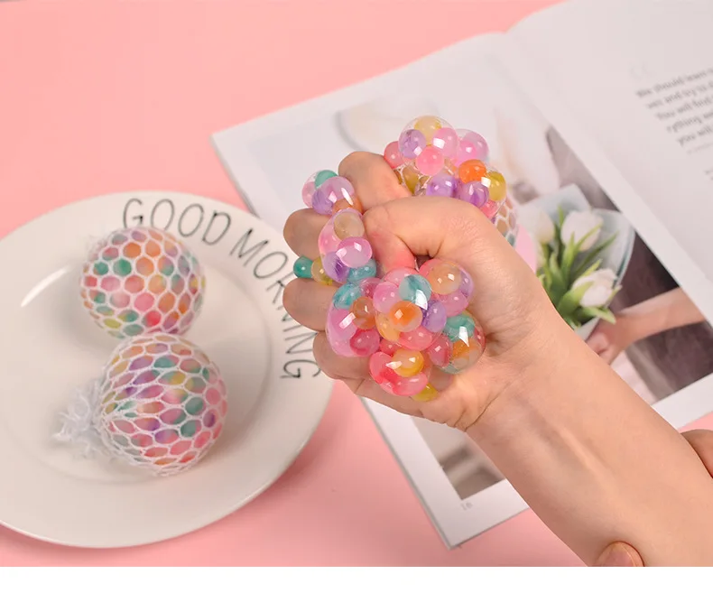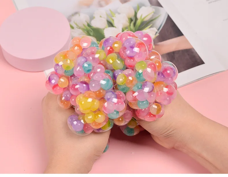 Bola reductora de presión con cuentas de arcoíris, juguetes blandos para aliviar el estrés, accesorio para reducir la presión para niños y adultos