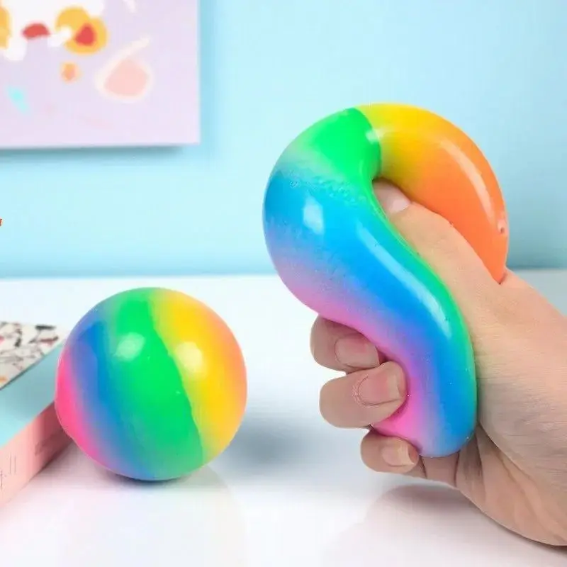 Bola rosa con gradiente de arcoíris para aliviar el estrés, juguete para apretar, pelota para saltar de rebote lento, pelota de juguete para entrenamiento de dedos para niños