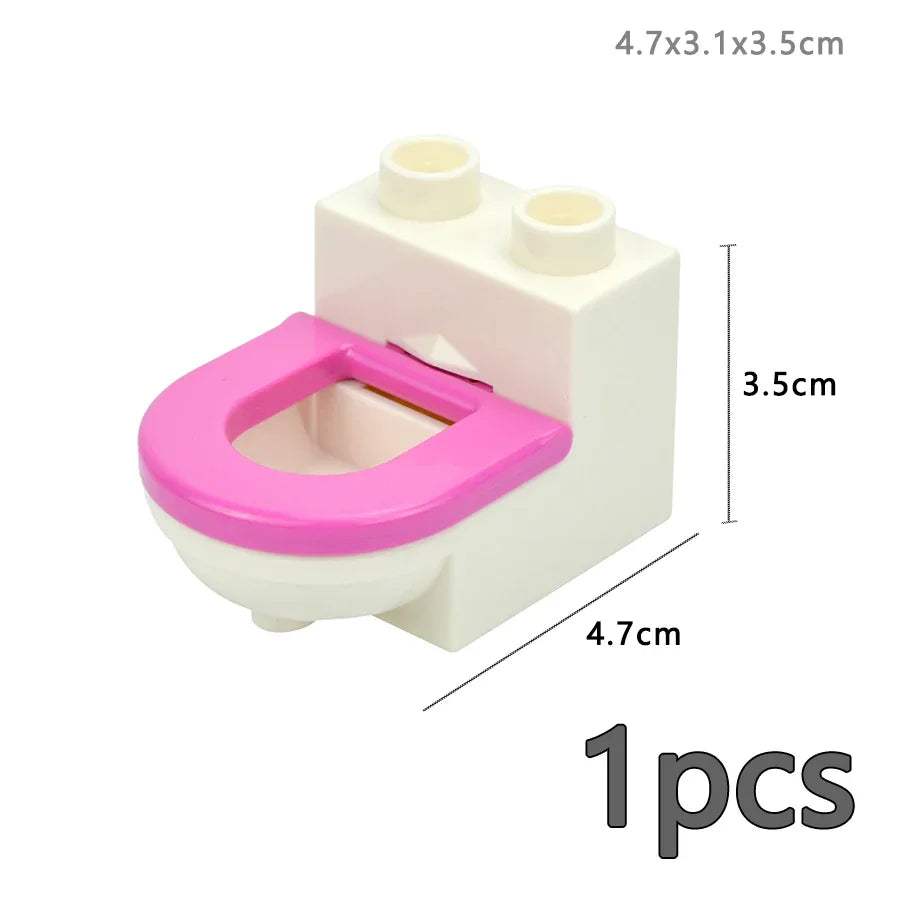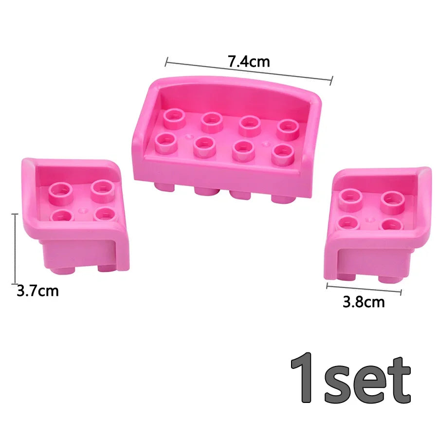 Duploes-figuras de partículas grandes, juguetes de ladrillo, bloques de construcción de gran tamaño, muebles de ciudad, escritorio, silla, cama, sofá, baño, cocina, casa