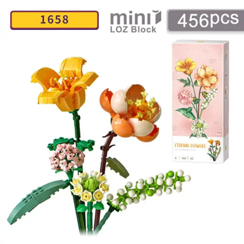 Mini bloques de construcción para niños, juguetes de ladrillos, flores, rompecabezas, maceta, plantas, regalo para niñas, decoración del hogar, 1657-1659 (con caja)