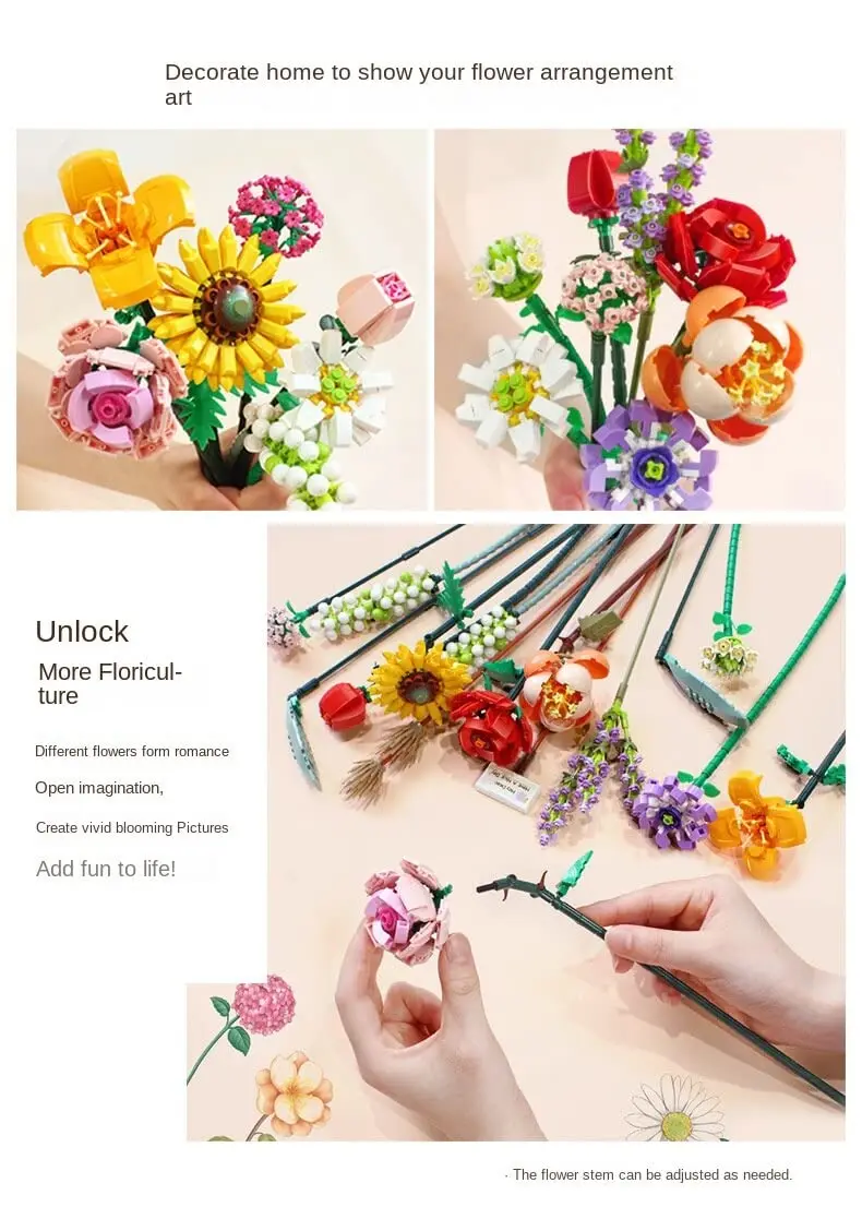 💮【Mini ramo de plantas】El ramo se compone de 547 bloques, que son coloridos, interesantes, románticos y enérgicos. También está equipado con instrucciones de color. Bajo la guía del manual, puede seguir los pasos de instalación y construir los artículos fácilmente.