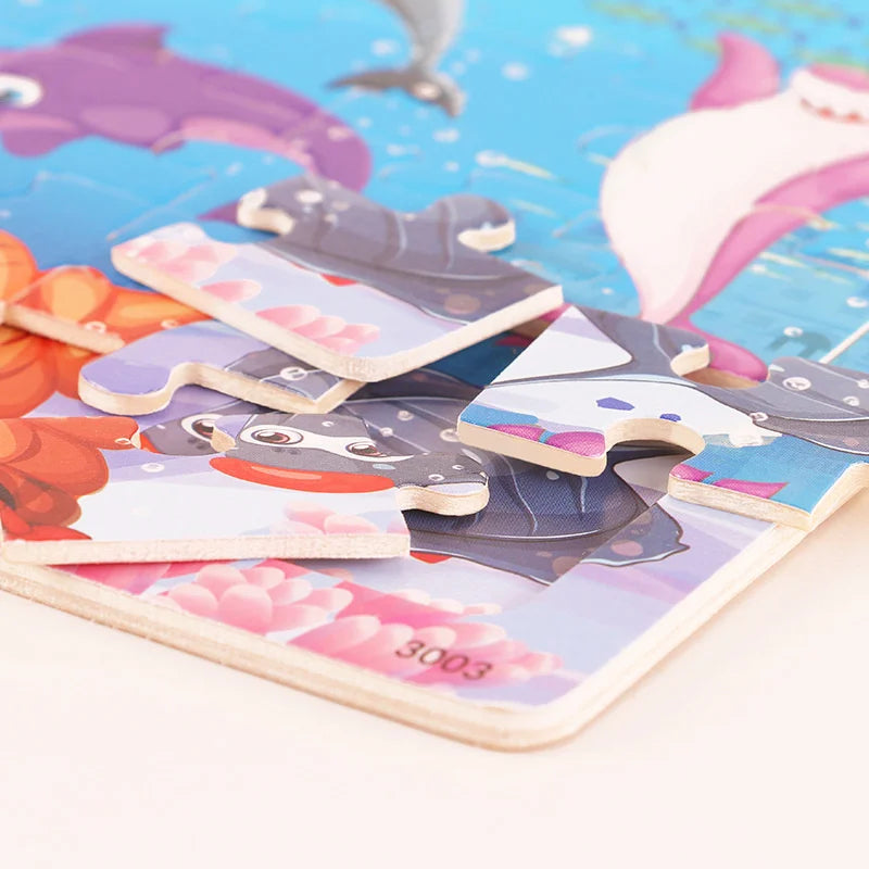 Rompecabezas 3D Montessori de 30 piezas económico, rompecabezas de madera con animales de dibujos animados, juego de mesa, juguetes educativos para niños, regalos