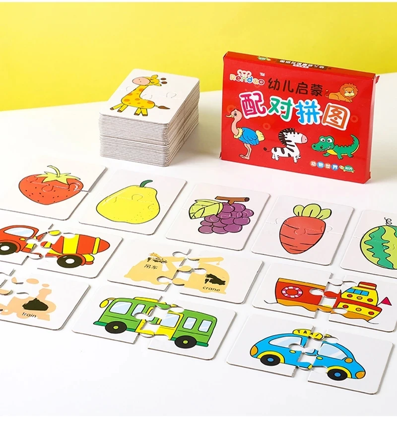 Rompecabezas de animales para niños pequeños de 1 a 2 años, niños y niñas, aprender animales, tarjeta de memoria, juego a juego, juguetes educativos para niños