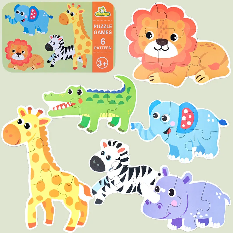 Rompecabezas de animales para niños pequeños de 1, 2, 3 años, niños y niñas, aprendizaje de animales, tarjeta de memoria, juego a juego, juguetes educativos para niños