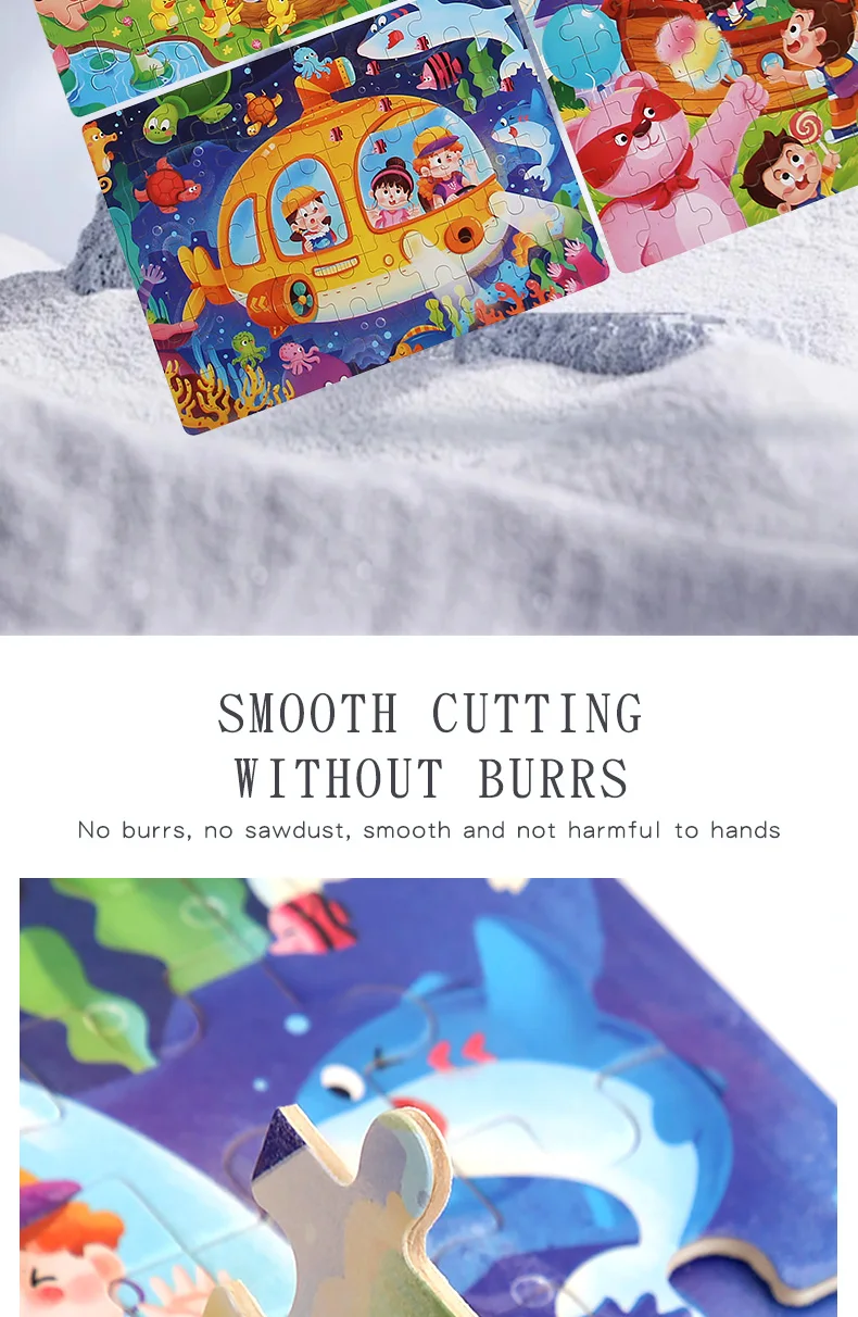 High Quality 3D Wooden Puzzle: Baby Cartoon Animal Traffic Jigsaw Early Learning Cognition