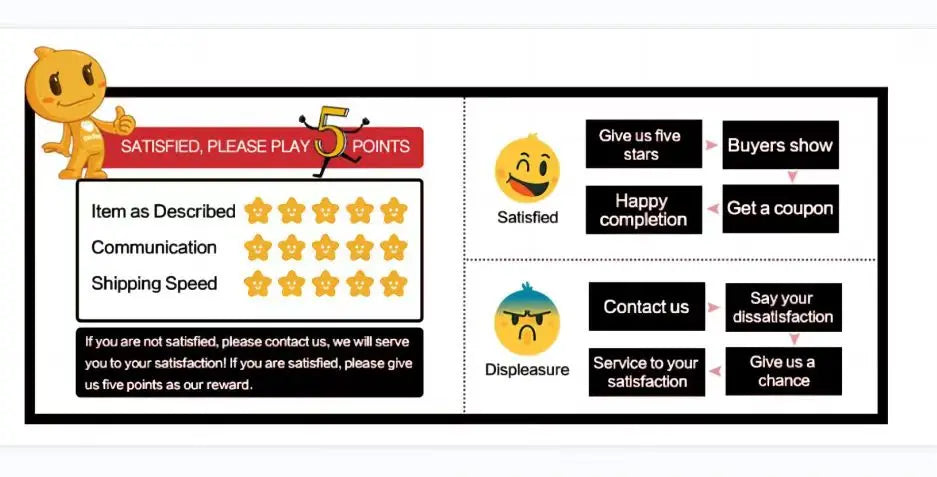 2. Deje comentarios positivos y 5 estrellas si está satisfecho con nuestros artículos y servicios. ¡Gracias!